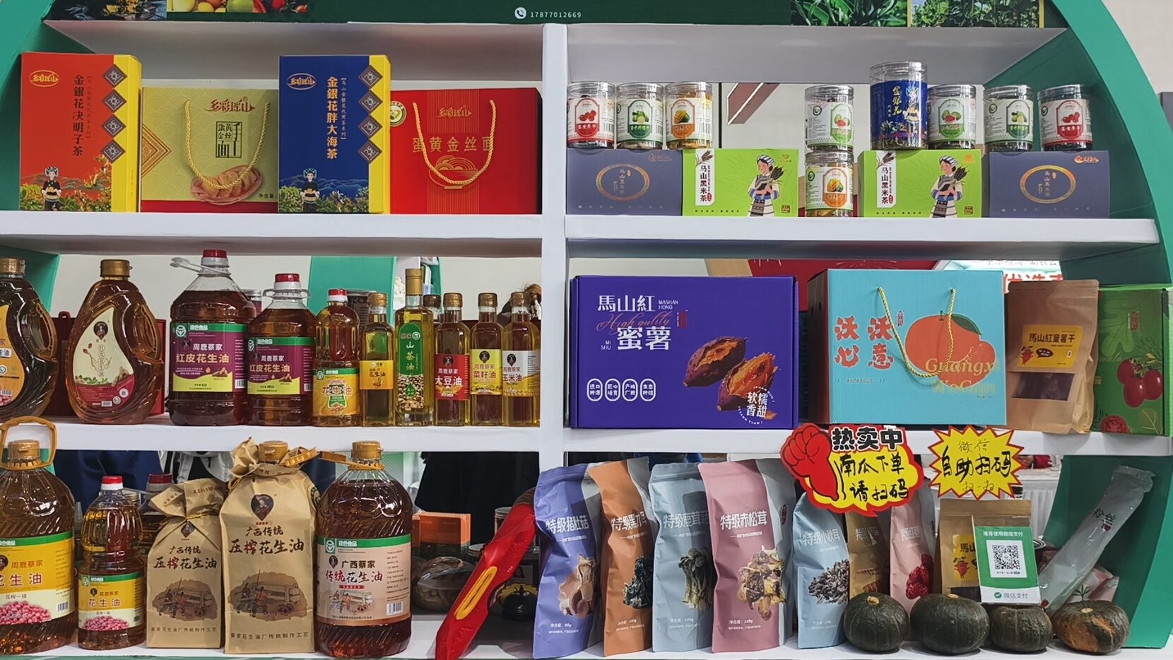 在地市综合形象展区、来自我县的特色农产品整齐排列,有花生油、牛肉酱、马山黑猪腊肉、南瓜、红薯等30多种优质农产品,吸引了众多与会者驻足留连。参观者现场品尝试吃,仔细询问产品信息。工作人员详细介绍产品的特点,充分推荐我县农产品的优良品质,现场非常热闹。