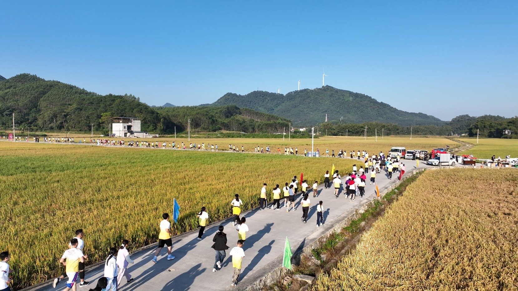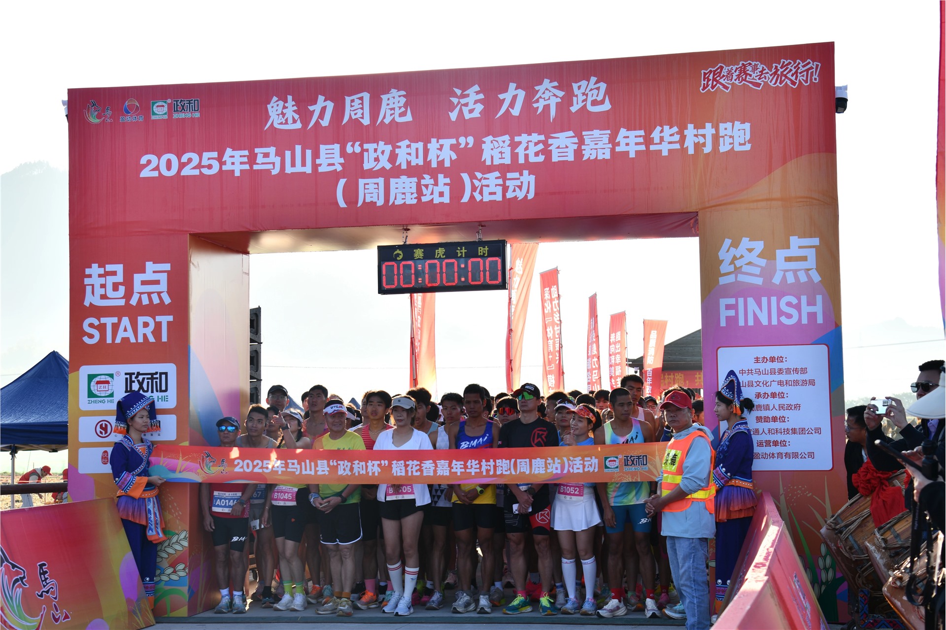 金黄的稻浪随风起伏,浓郁的稻香弥漫四周。11月15日,2025年马山县“政和杯”稻花香嘉年华村跑(周鹿站)在马山县现代种业科技产业园鸣笛开跑。来自国内各地的800余名跑者穿梭于金色稻田之间,奔跑在村间小道,感受着周鹿的美好风光。本次村跑是马山四季村跑系列赛收官后的年度压轴之战,赛事不仅延续体育+文旅的融合基因,更将田园风光与运动活力完美结合,让每位参赛者都能切身感受乡村振兴的蓬勃气象。