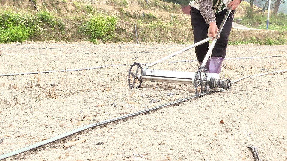 在兴隆村的冬闲田种植现场,土地已经平整完毕,几名村民分散在田间忙着播种、铺设滴灌管、撒施有机肥,他们动作娴熟分工有序。