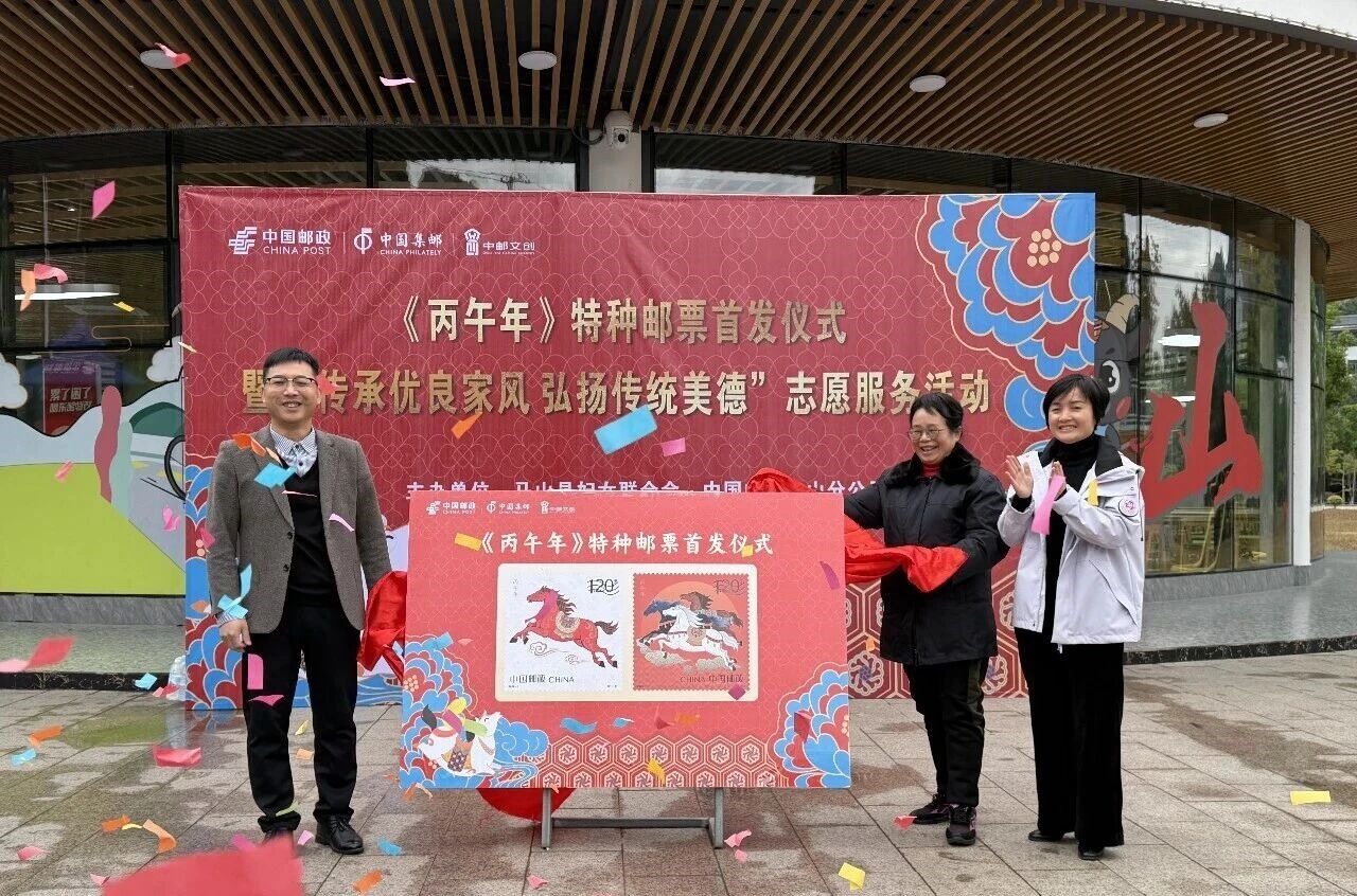 1月5日上午,由马山县妇女联合会与中国邮政马山县分公司联合举办的《丙午年》特种邮票首发仪式暨“传承优良家风 弘扬传统美德”志愿服务活动在马山县儿童友好会客厅圆满举行。活动吸引了马山县社会各界嘉宾、集邮爱好者、巾帼志愿者一同参与,共同见证第四轮十二生肖邮票中丙午马年邮票的面世。