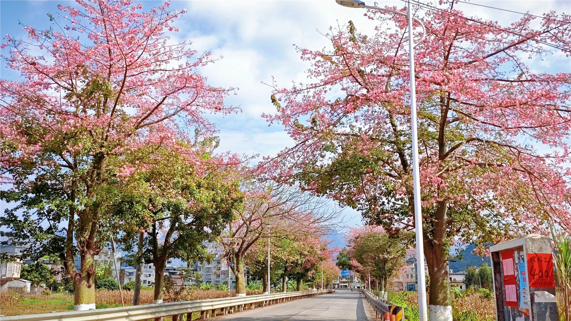 近期,异木棉陆续进入绽花期,县城不少地方被一树树粉色花朵装点,焕发出别样的冬日生机与活力。其中,金钗镇的异木棉花开得最为繁茂。从S510省道往金钗镇鑫源社区方向,近百米长的道路两侧异木棉竞相开放,温柔地装点着沿途风景。