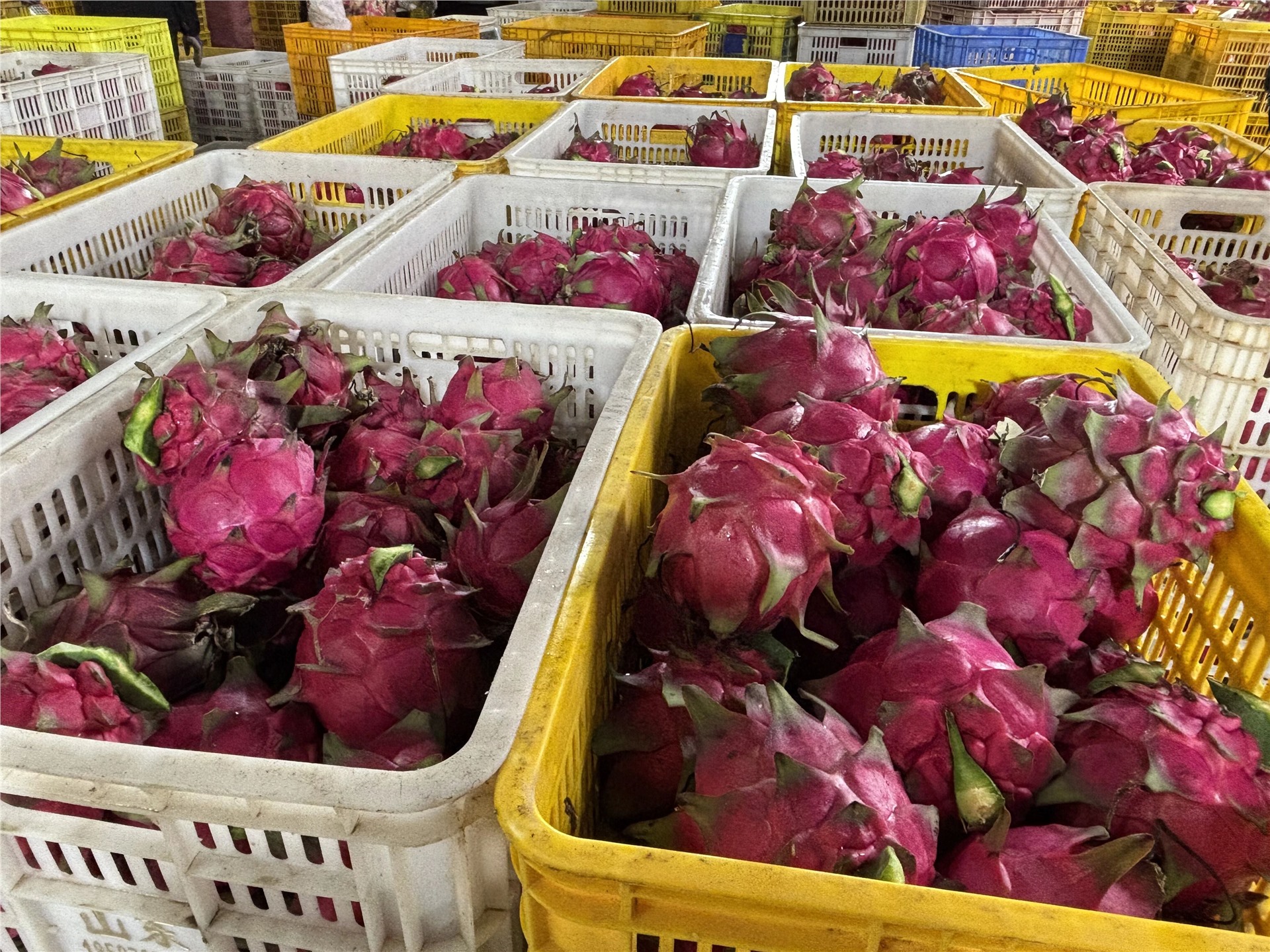 1月22日,记者走进周鹿镇绿美种植专业合作社的火龙果基地,一颗颗红心火龙果挂满枝头,一片丰收的景象,工人们穿梭其间,忙碌地进行采摘、分拣、装箱。
