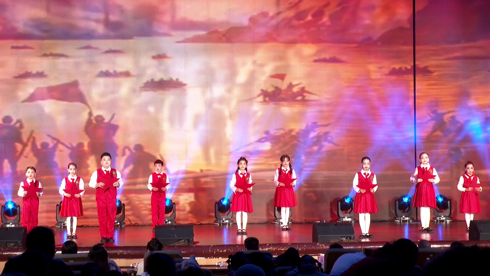 晚会现场,亲情与书香交织,暖意与豪情相融。开篇的《新春快乐》以欢快灵动的诵读节奏拉开帷幕,孩子们稚嫩而饱满的声音传递出对新春的喜悦与对生活的热爱,瞬间点燃现场氛围;《我喜欢红色》用深情激昂的演绎,回望红色征程、礼赞信仰力量,让红色基因在诵读中代代相传;《画出中国梦》以童真视角勾勒强国蓝图,每一句诵读都饱含着少年儿童对祖国未来的美好憧憬。26个精心编排的节目依次登场,涵盖集体朗诵、舞台表演等多种形式,既彰显中华优秀传统文化魅力,又紧扣时代家风、民族团结主题。