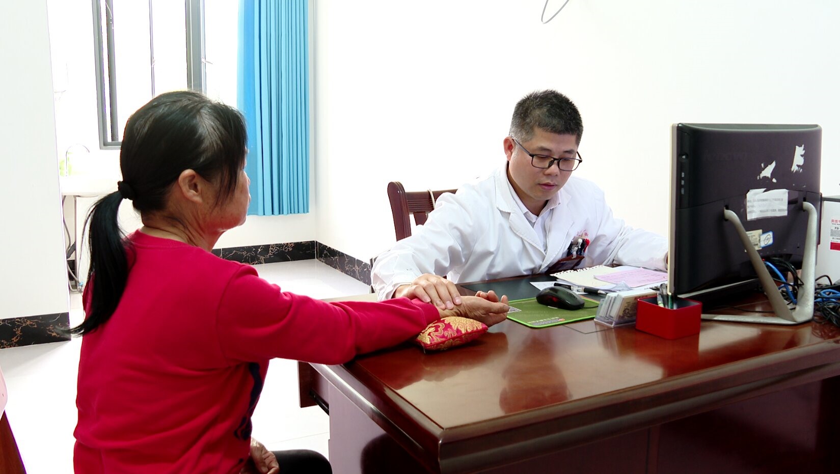 周鹿中心卫生院中医师 韦干果:中医看病,主要是望、闻、问、切的过程。比如咳嗽,它跟五脏六腑都有关系,通过把脉最终界定具体是哪个脏腑的问题。它是一个互相印证、比较精准的诊疗方法。